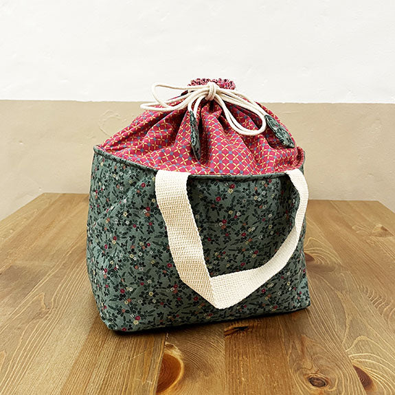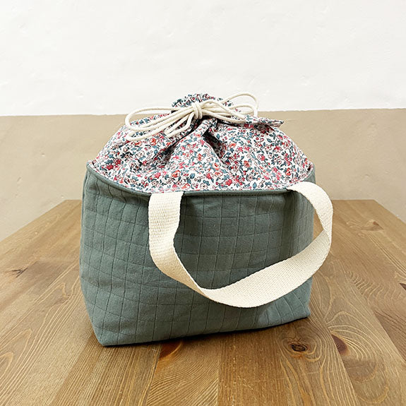 Grande pochette en coton imprimé et ouatiné aux touches colorées avec ouverture coulissante et cordons, poche intérieure